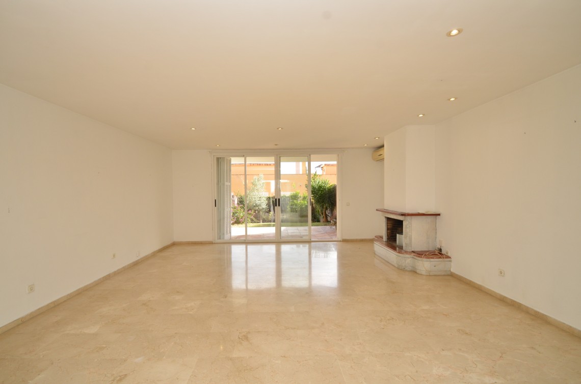Large townhouse in Sant Agustín with a garage and a small garden. Living area of approximately 260 m² distributed over four floors. On the basement level you will find a large and spacious garage. On the first floor there is the kitchen, a living room with a cozy fireplace, one bathroom, and direct access to the small garden. On the second floor are the bedrooms and bathrooms, as well as access to a small terrace. At the top of the house there is a large living/entertainment room with wardrobes and storage spaces, as well as a bathroom.