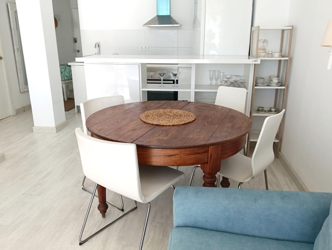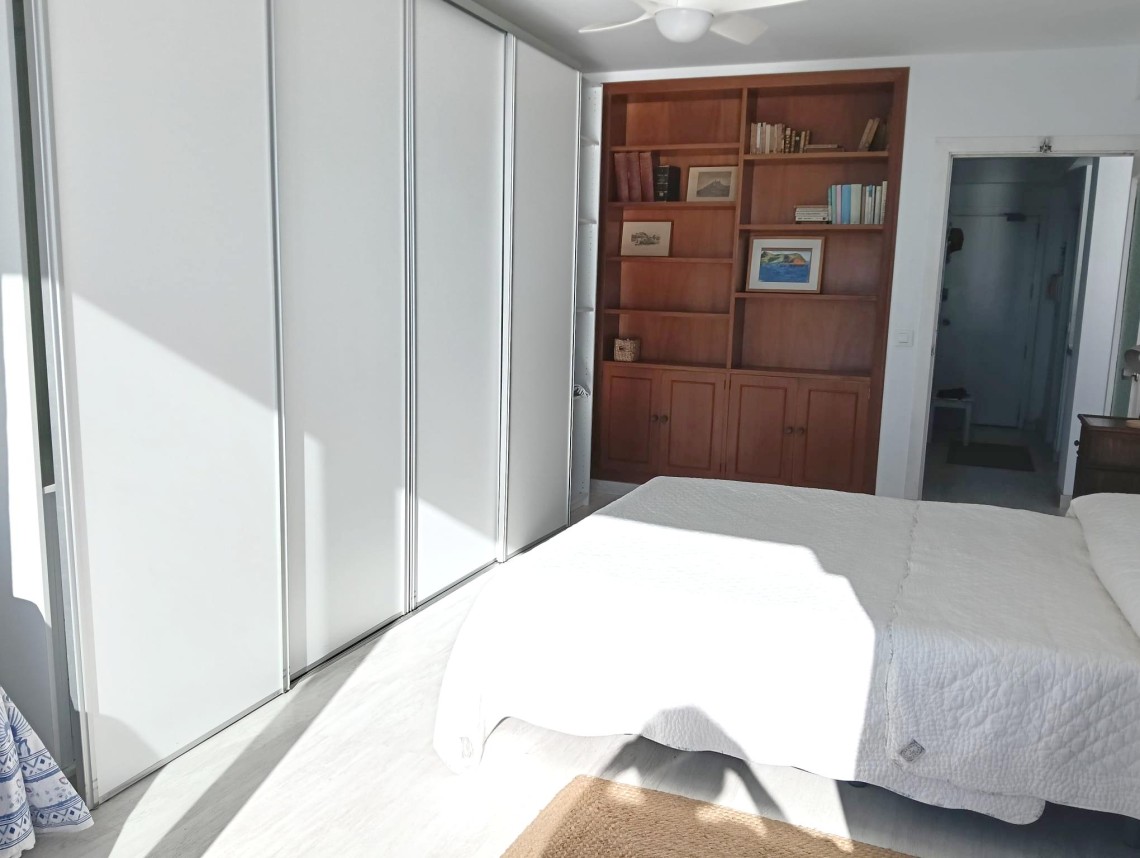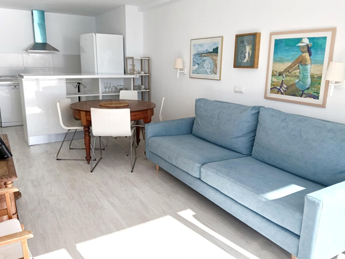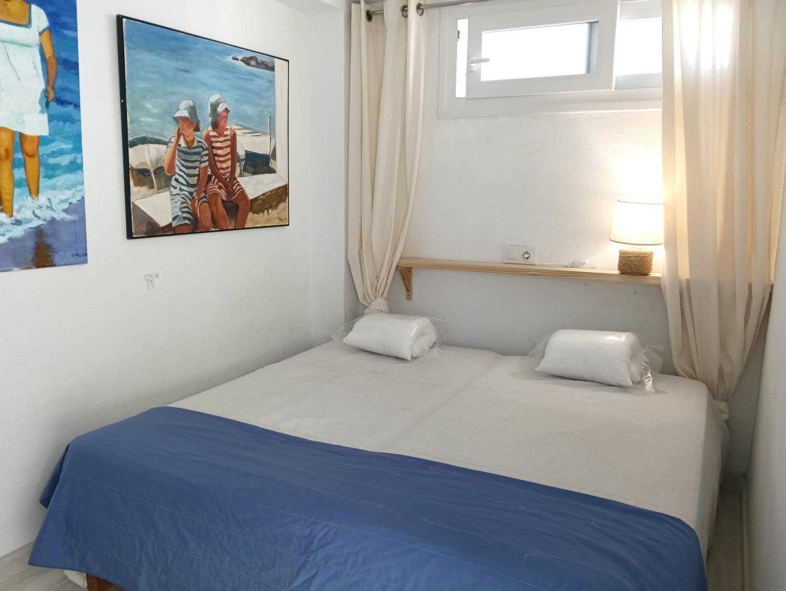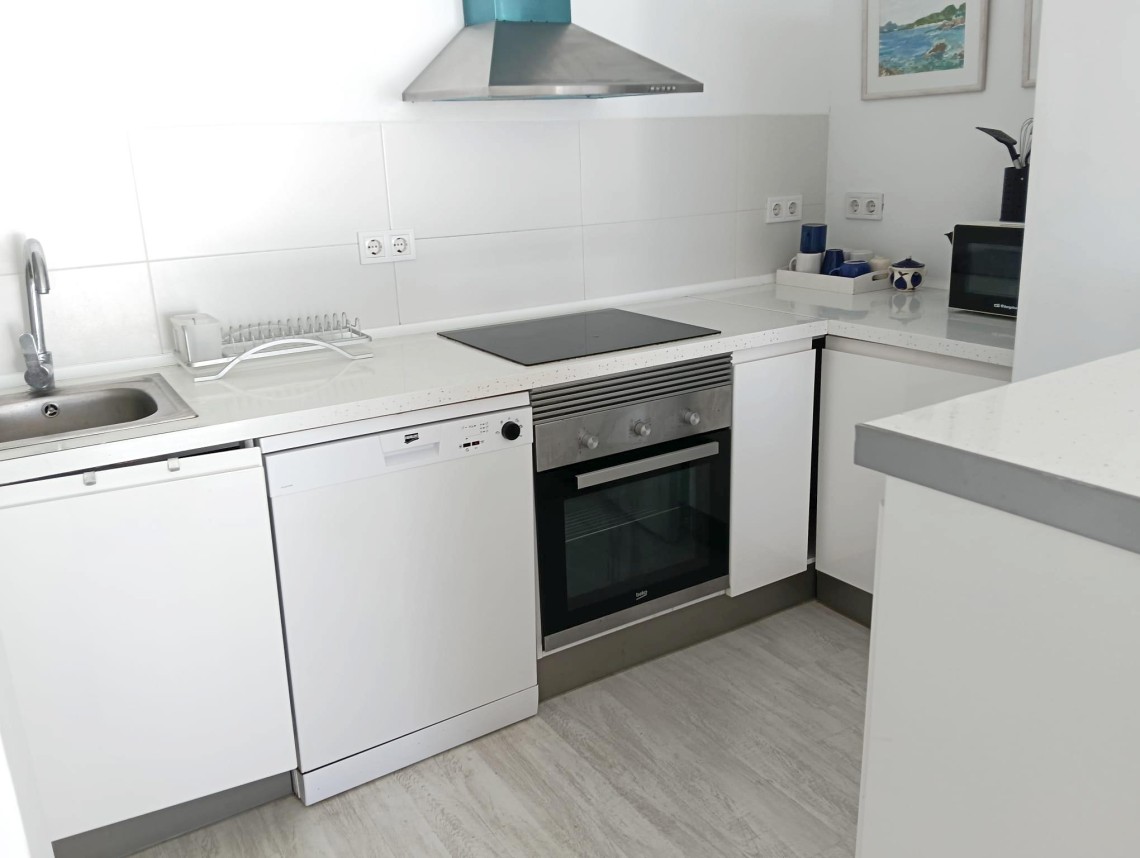 Denna ljusa och trevliga lägenhet ligger på femte våningen med hiss och bjuder på en fantastisk utsikt över det glittrande havet. Med en total yta på 66 m² erbjuder den ett välplanerat boende med kök, vardagsrum, två sovrum och ett badrum – perfekt för dig som vill njuta av Mallorcas kustliv.